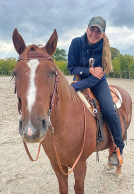 Das Reiten gestaltete sich jedoch viel schwieriger als gedacht. Meine Stute zeigte deutliches Abwehrverhalten, und uns fehlte ein systematischer Aufbau. Genau da kam Anne ins Spiel: Sie hat mir nicht nur gezeigt, dass Anreiten auch im Online-Unterricht möglich ist, sondern mir die Sicherheit gegeben, dass wir es schaffen können – ohne zusätzliche Bodenunterstützung.